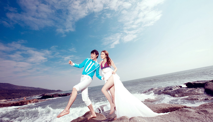 订婚仪式在厦门婚纱摄影新人心里的地位越来越重要。在庄重的订婚宴上,你肯定也希望有摄影师将你们美好的瞬间定格下来。但是,订婚照上的着装也是有讲究的,现在厦门水下婚纱摄影作品给你几条建议,关于订婚宴上的着装禁忌吧!