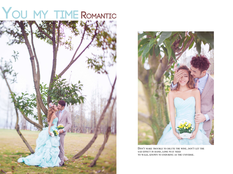 关于婚纱照拍摄的最佳时间,也跟婚纱摄影作风有着千丝万缕的联络。假如是内景婚纱摄影的话就无所谓了,要是外景的话就要慎重思索了。但是普通状况下不会选择阳光十分足的时分,由于那样对照片的光线不好把控,激烈的阳光下新人睁不开眼睛,无法拍出理想效果,所以普通不会选择在正中午的时分。