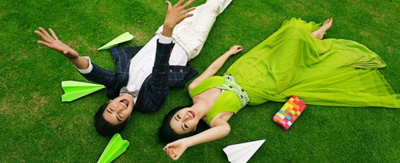 许多新人在拍婚纱摄影的时候,动作这很是头疼,不知道怎样摆才会自好,得体。在这里和大家说一个小诀窍:四肢尽量发生变化,有弯曲或者成角度,不要彼此平行。不管被摄者是持坐姿或是站姿,千万不要让双臂或双腿呈平行状,因为这样会让人有僵硬、机械之感。稳当的做法能够是一曲一直或两者构成一定的角度。这样,就能既形成动感,姿态又富于变化。
